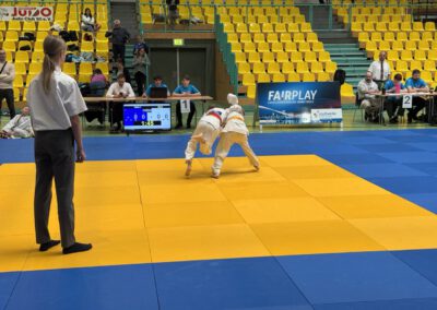 Nach der Mittagspause gehörte die Matte den jüngsten Starterinnen und Startern: Die U9 trat mit großer Begeisterung an. In voll besetzten Listen hatten unsere Jüngsten, eine ganze Menge Kämpfe zu absolvieren und konnten dort auch mit viel Kampfgeist einige Siege holen. Am Ende konnten sich alle drei U9er mi einem Platz auf dem Podium belohnen.