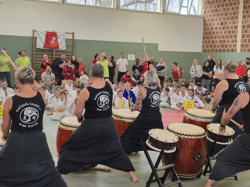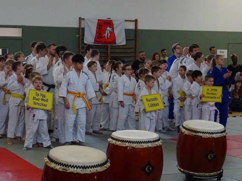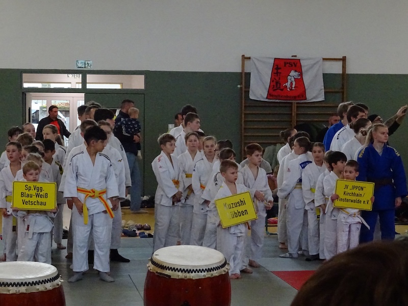Sonntag, 1. Advent, Weihnachtsmarkt in Lübben und trotzdem trafen sich zehn Lübbener Judoka, um nach Werben zum Wettkampf zu fahren. Eingeladen hatte der Judoverein PSV Cottbus zu einem Freundschaftsturnier. Die Vereine Sumo „Chavdar“ Bulgarien, Großräschen, Jänschwalde, Vetschau, Lauchhammer, Senftenberg und Finsterwalde waren ebenso zahlreich angereist. Der Einmarsch aller Vereine zu Beginn des Wettkampfes und die stimmungsvolle Begrüßung der Trommler „Natsumi-Taiko“ aus Bad Liebenwerda werden uns in guter Erinnerung bleiben.