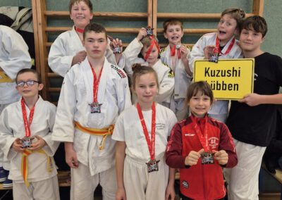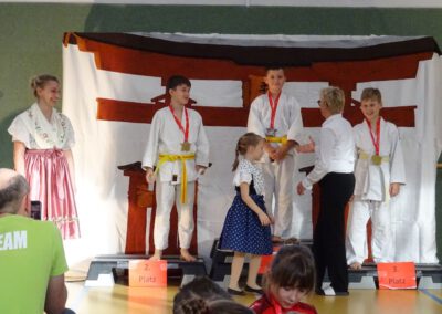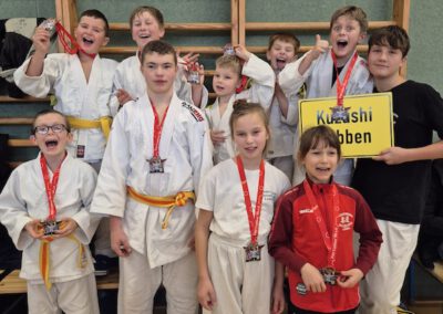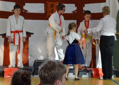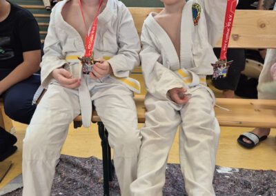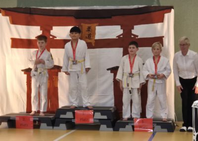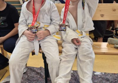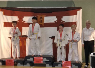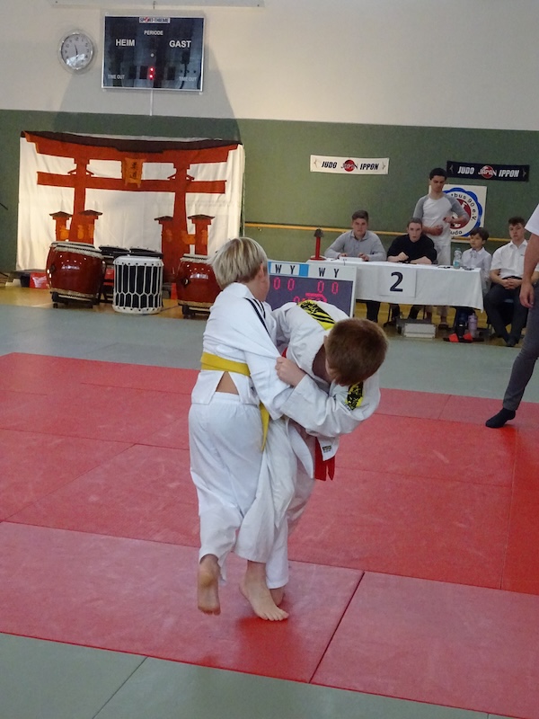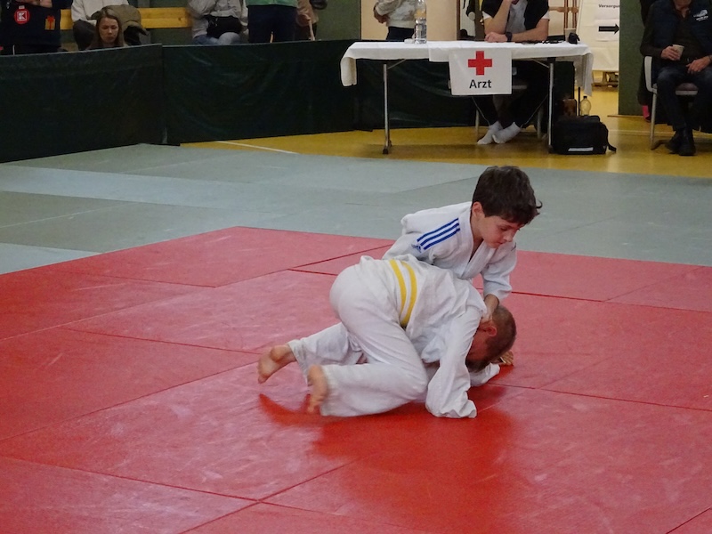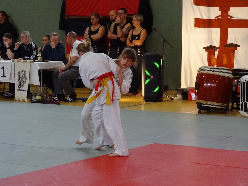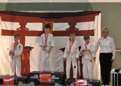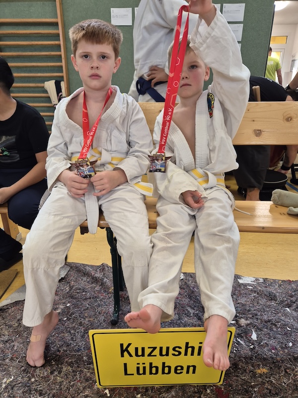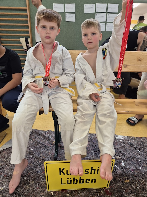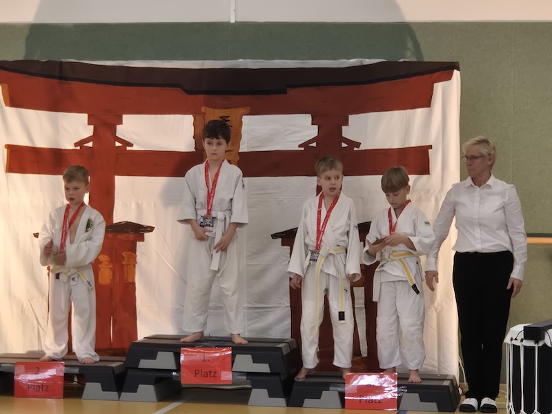 Für Piet war es der erste Wettkampf, diesmal nicht auf der Tatami, sondern am Mattenrand als Trainerassistent. Seine Aufgabe war die Erwärmung, die Kleinen zu motivieren und eventuell zu trösten. Die Ergebnisse zeigen, dass er Alles richtig gemacht hat. Unsere Jüngsten Robert und Liam in der U9, sowie Hanna und Paul in der U11, konnten jeweils zwei Kämpfe gewinnen und wurden in ihrer Gewichtsklasse mit einer Silbermedaille belohnt.